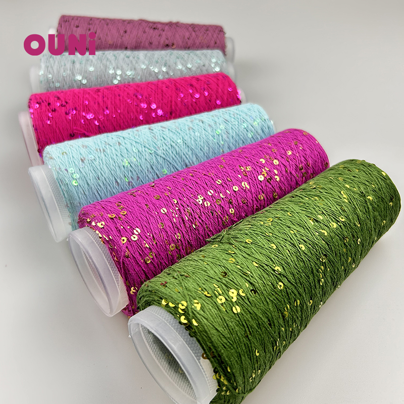 Smaller sequin natual 100% cotton yarn 5-7 cm distance 2mm 3mm sequin yarn